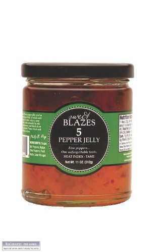 Sweet Blazes 5 Pepper Jelly...a Sweet Fruit Based Jelly with Cayenne, Pablano, Red and Green Bell, and De Arbol Peppers. This Is What Pepper Jelly Should Taste Like. Mild in Heat but Enormous in Flavor. is very popular product and also bestseller on amazon website right now!!! And Sweet Blazes 5 Pepper is high quality products from Sweet Blazes . Following my long search I determined that at amazon is cheapest and guaranteed shipping as well. Normally ships with 24 hours.